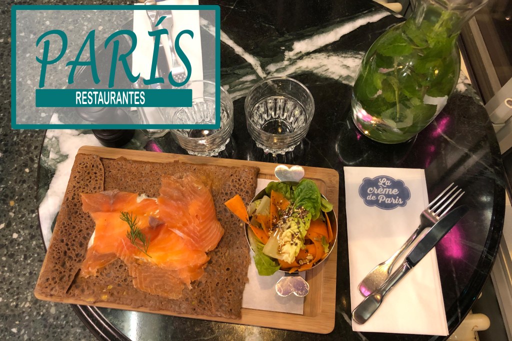 De entre todos los lugares donde fuimos a comer en París, sin duda el que más nos gustó fue La Crème de París. Cuenta con una amplía carta de gofres salados, así como galettes. En apariencia, estas últimas son muy similares a los crepes, solo que elaboradas con una masa de harina de trigo diferente conocido como sarraceno. Para darle un toque dulce a tu comida, también tienen una gran variedad gofres y crepes dulces, entre otras especialidades.