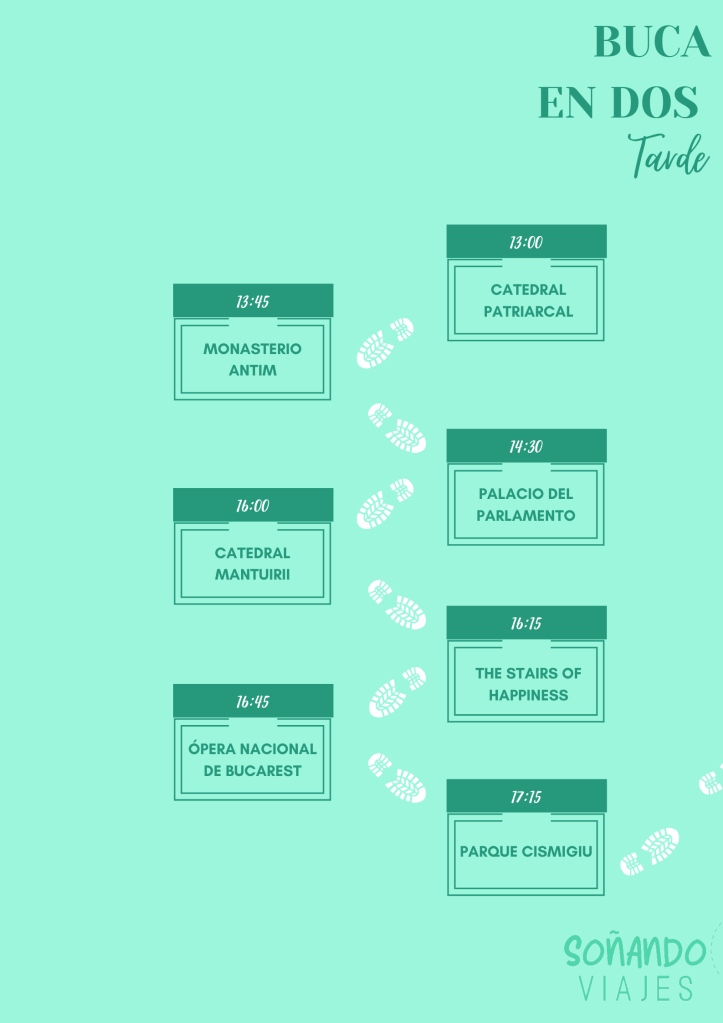 Al igual que hemos hecho con el recorrido de por la mañana, te dejamos esta hoja de ruta donde hemos incluido todos los lugares que ver en Bucarest por la tarde. Y sí, este documento también puedes descargártelo para utilizarlo durante tu escapada. ¡Esperamos que te resulte útil!