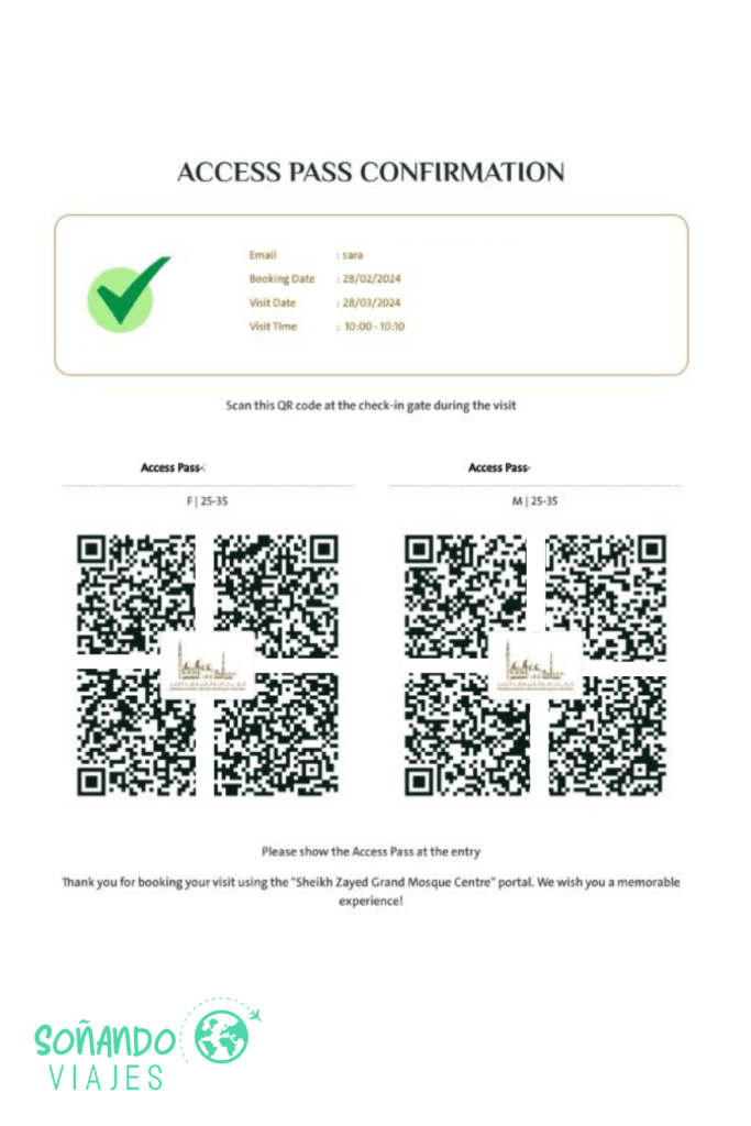 Si entras en su página verás que a la hora de sacar tus tickets te pide algunos datos personales. Tras ello, deberás seleccionar la franja horaria en la que te apetezca visitar este lugar de Abu Dabi. Ten en cuenta que el horario suele ser de 9:00 a 22:00, pero en Ramadán cambia ligeramente y también los viernes de todo el año. Al final del proceso se generará un código QR que tendrás que pasar por los tornos el día que vayas.